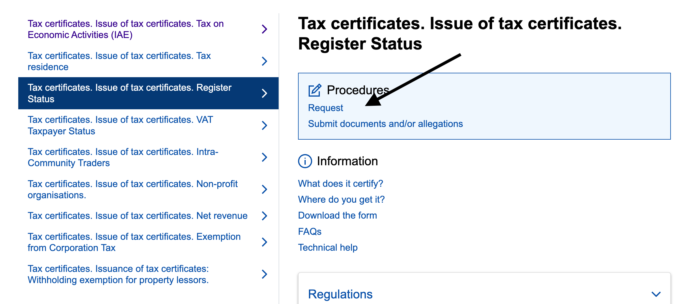 - Select: "Tax certificates - Issue of tax certificates - Tax on Economic Activities (IAE)".